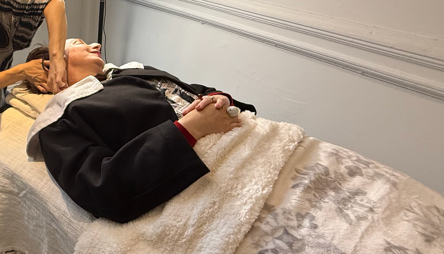 Our calming head and Décolleté massage with our custom organic aroma oil which blends natural lavender and rosemary and peppermint oils enhances blood circulation, supports the elimination of metabolic waste, and gently increases body temperature. These benefits help promote healthy hair growth while also relieving muscle tension, reducing eye strain, and improving overall skin tone and lifting up your facial line. Improved circulation further contributes to pain relief in various areas of the body, supporting both physical comfort and holistic well-being.
